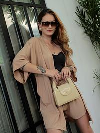 Textura e caimento : A viscose confere ao tecido uma textura suave e fluida, o que resulta em um caimento elegante e fluido. Por outro lado, o poliéster ajuda a manter a forma do tecido e a minimizar as rugas, o que é especialmente útil em roupas de alfaiataria que precisam manter uma aparência arrumada ao longo do dia.